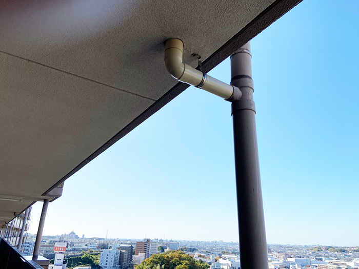 マンションの管理組合様からのご依頼で廊下の天井の排水配管の修理!